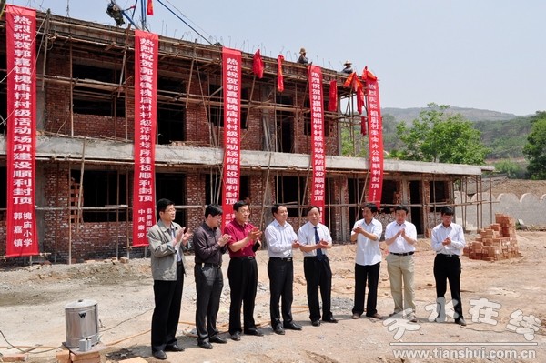 5月18日,秦安縣郭嘉鎮(zhèn)槐廟村村級綜合服務中心樓主體舉行盛大的完工封頂儀式。蘭州城市學院黨委副書記王汝鋒、校后勤管理處處長滿順昌、學生工作部部長兼招生就業(yè)處副處長魏晉華出席完工儀式。秦安縣委副書記、縣“雙聯(lián)”領導小組常務副主任裴貴軍,縣委組織部、農工部等有關負責人,郭嘉鎮(zhèn)鎮(zhèn)、村兩級干部參加了主體完工儀式。