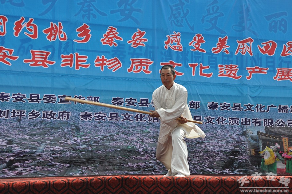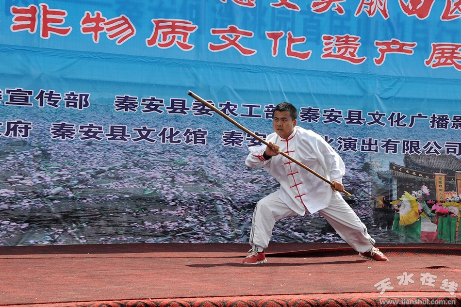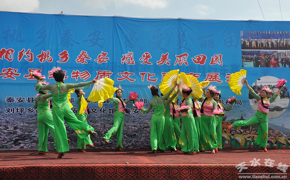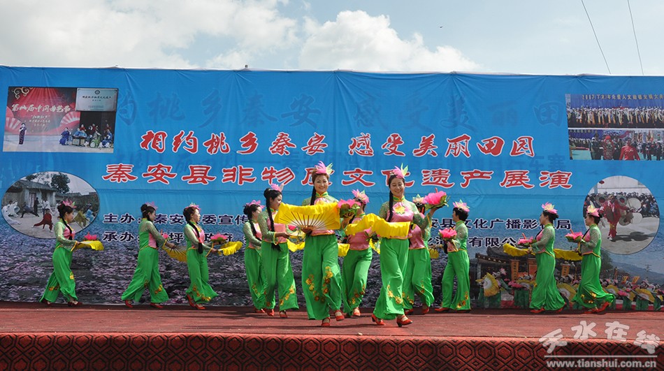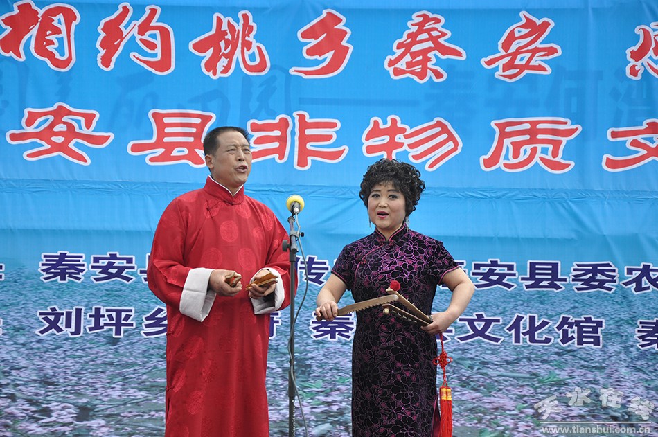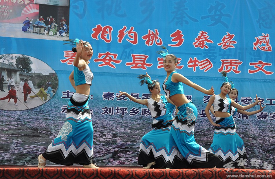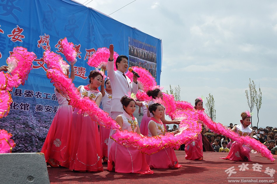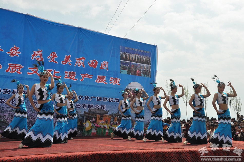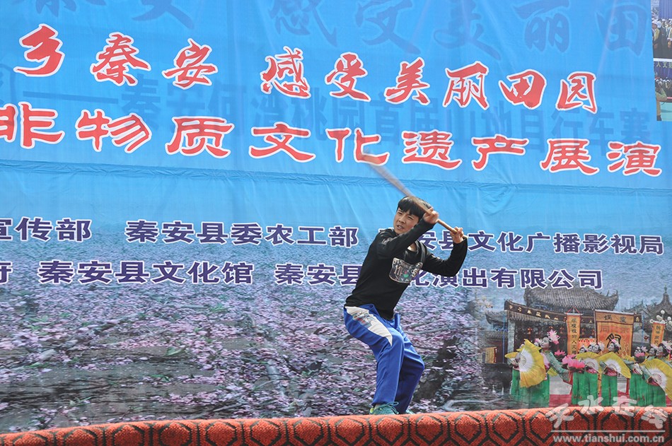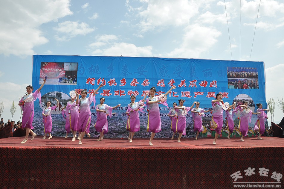 4月19日,秦安縣在“中國(guó)美麗田園·秦安何灣桃花景觀”舉行非物質(zhì)文化遺產(chǎn)展演。
