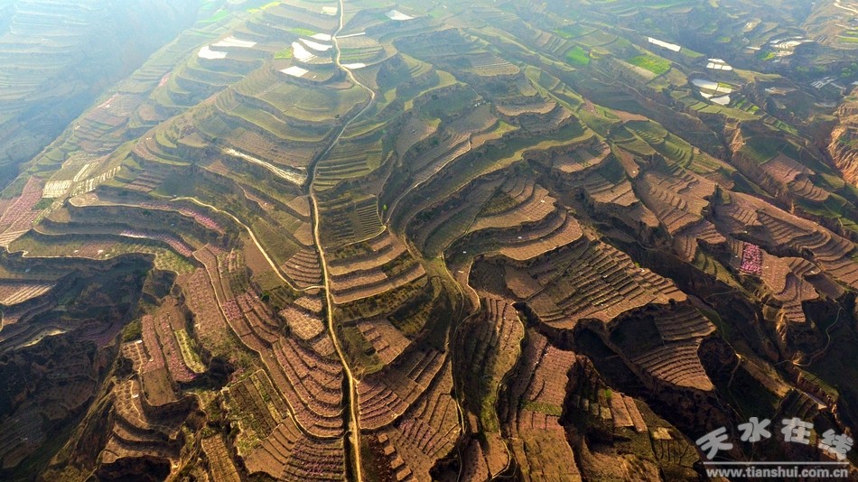(秦安縣西川鎮(zhèn)李堡村桃園景區(qū) 天水在線4月14日航拍)