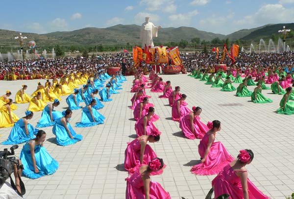 三是展示了清水發(fā)展的新形象。大會(huì)開(kāi)幕式是這次盛會(huì)的重頭戲之一,5月26日上午9點(diǎn)50分,在軒轅廣場(chǎng)舉行的《軒轅鼓》大型文藝表演,集中展示了清水的文化底蘊(yùn),充分體現(xiàn)了全縣廣大干部群眾艱苦創(chuàng)業(yè)、拼搏奮進(jìn)、開(kāi)拓創(chuàng)新、再創(chuàng)佳績(jī)的精神風(fēng)貌。在體育活動(dòng)中心、軒轅廣場(chǎng)、農(nóng)商貿(mào)綜合市場(chǎng)分別舉辦了大型明星演唱會(huì)、焰火晚會(huì)和秦腔公演等專(zhuān)場(chǎng)文藝演出。同時(shí),在軒轅廣場(chǎng)和軒轅賓館舉行了軒轅塑像揭幕儀式,召開(kāi)了天水軒轅文化研究會(huì)年會(huì)。特別是全縣各行各業(yè)和廣大市民在這次“節(jié)會(huì)”期間,以東道主的姿態(tài)爭(zhēng)做文明市民、笑迎天下賓客,向國(guó)內(nèi)外來(lái)賓和客商展示了清水良好的開(kāi)放形象。