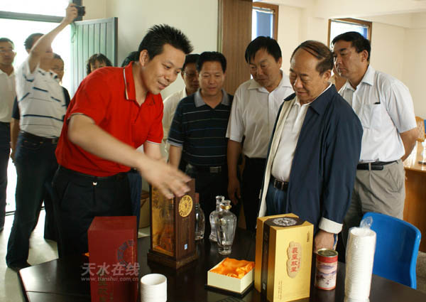 仲兆隆在天河酒業(yè)有限公司與公司經(jīng)理親切交談