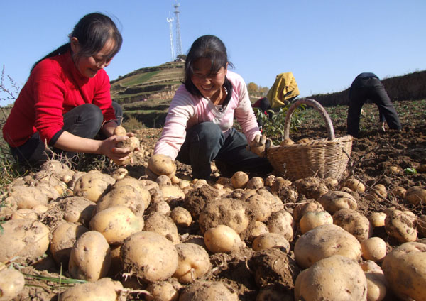 劉主席告訴記者,王河鄉(xiāng)在農(nóng)業(yè)產(chǎn)業(yè)化方面的目標是,萬畝洋芋萬頭豬,因地制宜奔小康。目前,該鄉(xiāng)僅洋芋一項收入就達到1500多元,人均1000元。鄉(xiāng)政府加強科技培訓和品種改良,使土豆畝產(chǎn)最高可達8000多斤,平均畝產(chǎn)4000多斤。很早就開始土地流轉(zhuǎn),實行訂單農(nóng)業(yè)的王河鄉(xiāng)生產(chǎn)的土豆,由經(jīng)銷商汪東統(tǒng)一收購。在實行訂單農(nóng)業(yè)過程中,汪東和蘭州一肥料廠聯(lián)合,采用測土施肥的方法,針對王河土質(zhì)配制專用肥,無償提供種植戶,等土豆收獲后再扣除貨款,這樣既改良了品種,增加了產(chǎn)量,又減輕了農(nóng)民負擔,深得老百姓擁護。