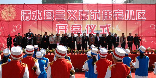 (清水縣委對外宣傳辦公室 劉海仙 楊兆康)9月24日,清水縣三義嘉苑住宅小區(qū)隆重舉行開盤儀式,原天水市政協(xié)主席王志榮,原市人大常委會副主任王守義,市直相關(guān)單位及部門負責(zé)同志,中共清水縣委書記王振宇,縣人大常委會主任阮珠有,縣政協(xié)主席劉懷珍,縣委副書記李寬余,縣委常委、縣政府副縣長劉中秋,縣委常委、人武部政委樂傳平,縣委常委、紀檢委書記妥國保,縣委常委、政法委書記趙云清,縣委常委、組織部部長魏勝奎,縣委常委、宣傳部部長張秀麗,縣委常委、永清鎮(zhèn)黨委書記夏草,縣人大常委會副主任陳喜祥、梁治新、汪天喜,縣政府副縣長蔡俊杰,縣政協(xié)副主席王天奉、周具珍、溫六吉出席儀式?h直各單位全體干部職工,天水市三義房地產(chǎn)開發(fā)公司部分員工和部分群眾參加了開盤儀式。