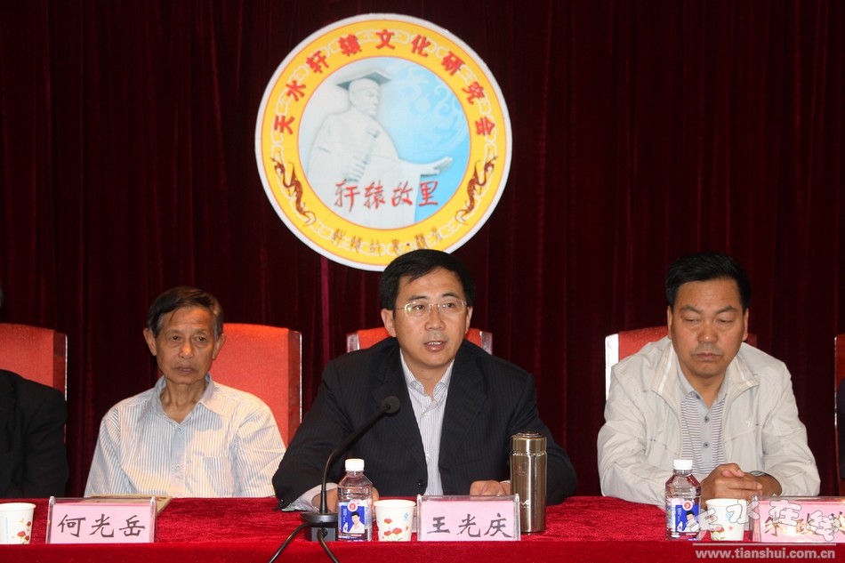 王光慶希望清水縣委、縣政府要以這次年會(huì)為契機(jī),在今后的工作中,牢牢抓住軒轅故里文化的研究和開發(fā)這個(gè)關(guān)鍵,大力弘揚(yáng)軒轅文化,精心打造軒轅故里文化品牌,展示天水深厚的始祖文化內(nèi)涵,牢牢抓住國(guó)家支持甘肅經(jīng)濟(jì)社會(huì)發(fā)展和建設(shè)關(guān)中—天水經(jīng)濟(jì)區(qū)的歷史機(jī)遇,發(fā)揮比較優(yōu)勢(shì),圍繞積淀豐厚的軒轅故里文化,正確把握軒轅文化的研究方向,以“開放、合作、發(fā)展、創(chuàng)新”為宗旨,不斷創(chuàng)新年會(huì)形式,豐富年會(huì)內(nèi)容,提升年會(huì)規(guī)格,努力把年會(huì)辦成區(qū)域經(jīng)濟(jì)、文化、旅游合作交流的盛會(huì)。王光慶同時(shí)希望天水軒轅文化研究會(huì)立足天水、面向全國(guó),積極廣泛地吸引市內(nèi)外的廣大熱心人士、權(quán)威人士以及有關(guān)學(xué)術(shù)組織和團(tuán)體,堅(jiān)持做好對(duì)外聯(lián)絡(luò)、交流與合作,進(jìn)一步擴(kuò)大軒轅故里在海內(nèi)外的影響,促進(jìn)工作取得成效。