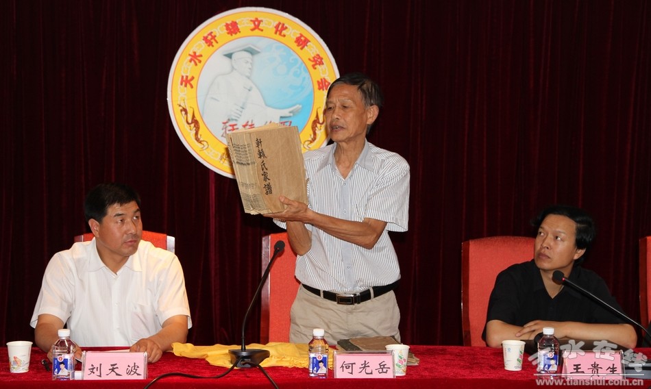研討會(huì)上,天水軒轅文化研究會(huì)顧問(wèn)、市委常委、宣傳部長(zhǎng)王光慶作了重要講話;原湖南省社會(huì)科學(xué)院炎黃文化研究所所長(zhǎng)、研究員、中國(guó)漢民族研究會(huì)副會(huì)長(zhǎng)、國(guó)家級(jí)突出貢獻(xiàn)的專家何光岳等專家學(xué)者作了交流發(fā)言;甘肅省民間文藝家協(xié)會(huì)副主席、西北師范大學(xué)副教授王貴生宣讀了省文聯(lián)命名清水縣為“軒轅文化之鄉(xiāng)”的決定;中國(guó)儒文化協(xié)會(huì)籌備小組秘書長(zhǎng)、陜西黃帝文化研究院學(xué)術(shù)院長(zhǎng)孫興華代表中國(guó)著名考古學(xué)家石興邦先生贈(zèng)送了“軒轅故里”題詞作品,河南省軒轅氏姓氏工作委員會(huì)會(huì)長(zhǎng)軒轅威贈(zèng)送了書法作品;天水軒轅文化研究會(huì)副會(huì)長(zhǎng)、清水縣委副書記、縣長(zhǎng)劉天波作了講話,天水軒轅文化研究會(huì)副會(huì)長(zhǎng)、清水縣委副書記劉中秋作了致辭。