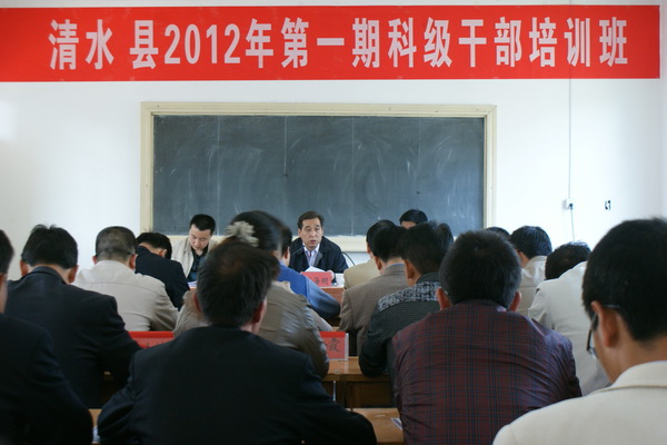 5月17日,清水縣舉辦2012年科級(jí)干部培訓(xùn)班,重點(diǎn)對(duì)2011年以來(lái)新提拔的科級(jí)干部和黨政主要領(lǐng)導(dǎo)干部進(jìn)行集中培訓(xùn)?h委常委、組織部長(zhǎng)剡海明出席開班典禮并講話。會(huì)議由縣委組織部副部長(zhǎng)、縣人才工作領(lǐng)導(dǎo)小組辦公室主任忽會(huì)強(qiáng)主持。