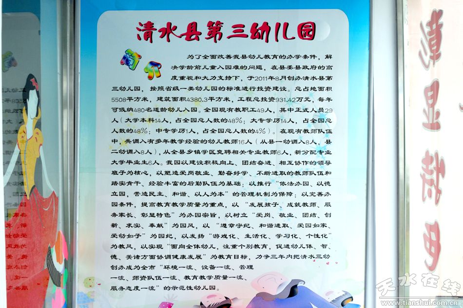 。10月20日,天水在線走進清水縣,開展“喜迎黨的十八大,走進清水看教育”主題采訪活動,就中小學(xué)校、幼兒園校園及配套設(shè)施標(biāo)準(zhǔn)化建設(shè)情況進行攝影采風(fēng)。圖為清水縣第三幼兒園)