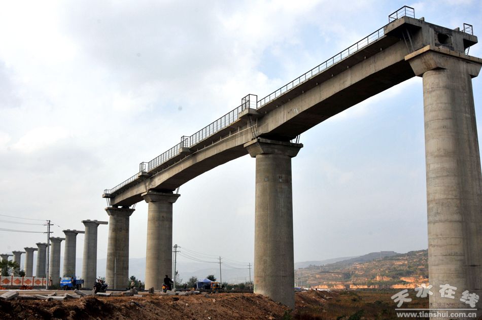 (10月20日,天水在線走進(jìn)清水縣,開展“喜迎黨的十八大,走進(jìn)清水看項目”主題采訪活動,用鏡頭記錄和展示清水縣近年來項目建設(shè)的喜人成果,全面反映以項目建設(shè)為抓手推動縣域經(jīng)濟(jì)快速發(fā)展的良好局面。 圖為天平鐵路清水特大橋)