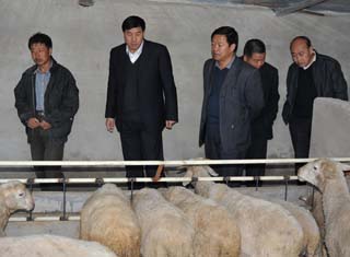 (檢查李江生的養(yǎng)羊小區(qū)建設(shè))