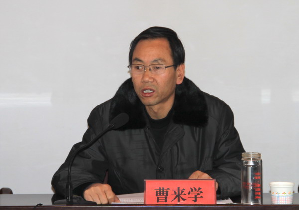 (縣人社局局長(zhǎng)曹來(lái)學(xué)主持培訓(xùn)會(huì))