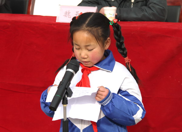 1月8日,天水移動公司 “學(xué)雷鋒、見行動”“點對點”幫扶活動發(fā)放儀式在草川鄉(xiāng)中心小學(xué)舉行。天水市移動公司副總經(jīng)理蔡瑞峰、清水縣政府副縣長何敬忠出席發(fā)放儀式,縣教體局、草川鄉(xiāng)中心小學(xué)全體師生參加了幫扶助學(xué)發(fā)放儀式。