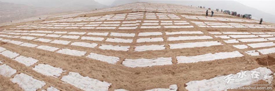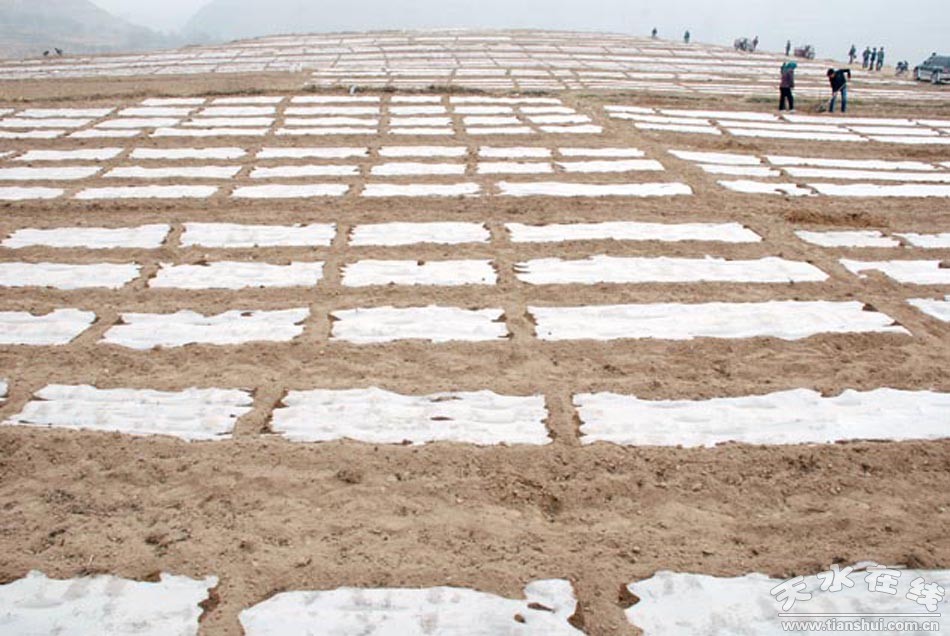 (圖為清水縣紅堡萬畝核桃頂凌覆膜示范點<套種核桃樹苗>) |