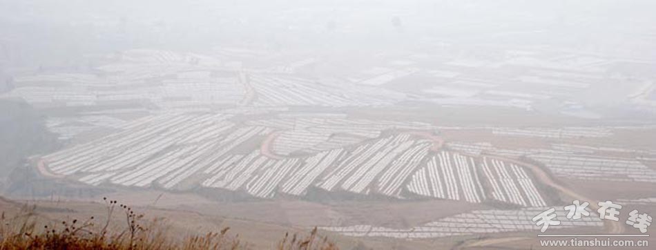 (圖為清水縣紅堡萬畝核桃頂凌覆膜示范點<套種核桃樹苗>)