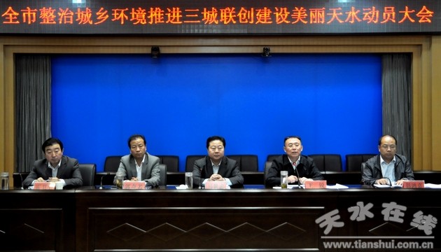 5月10日上午,天水市召開“整治城鄉(xiāng)環(huán)境、推進三城聯(lián)創(chuàng)、建設(shè)美麗天水”活動動員大會。清水縣委書記劉天波,縣委副書記、縣長馬越垠,縣委常委、常務(wù)副縣長馬小龍,縣委常委、副縣長馬利民,縣委常委、宣傳部長張秀麗,縣委常委、組織部長剡海明,縣委常委、政法委書記孟曉龍,副縣長蔡俊杰、何敬忠及縣直各單位、各部門負責(zé)人在清水分會場參加會議。各鄉(xiāng)鎮(zhèn)黨委書記、鄉(xiāng)鎮(zhèn)長及全體干部職工在鄉(xiāng)鎮(zhèn)分會場參加會議。