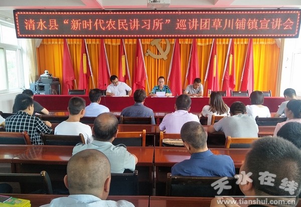 為深入學(xué)習(xí)貫徹黨的十九大精神,全面落實習(xí)近平總書記關(guān)于新時代農(nóng)民講習(xí)所工作重要指示精神,努力提高農(nóng)民思想道德素質(zhì)、民主法制意識,提升干部群眾脫貧攻堅內(nèi)生動力,密切黨群干群關(guān)系,正確引領(lǐng)社會新風(fēng)尚,全面提升農(nóng)村鄉(xiāng)風(fēng)文明建設(shè)。8月7日,清水縣“新時代農(nóng)民講習(xí)所”巡講團(tuán)第一巡講組走進(jìn)草川鋪鎮(zhèn)開展宣講活動。草川鋪鎮(zhèn)全體鎮(zhèn)干部、11個行政村黨支部書記、群眾代表共計100余人參加了宣講活動。