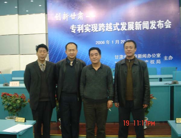 2006年元月20日,天水華圓制藥設(shè)備科技有限責(zé)任公司總經(jīng)理李晟應(yīng)邀出席了在甘肅省科技廳舉辦的“2005創(chuàng)新甘肅專利實(shí)現(xiàn)跨越式發(fā)展新聞發(fā)布會(huì)”并做專題發(fā)言。本次新聞發(fā)布會(huì)由甘肅省人民政府新聞辦和省知識(shí)產(chǎn)權(quán)局共同舉辦,新華社、甘肅日報(bào)等多家知名媒體參加。會(huì)后李晟總經(jīng)理與省科技廳及知識(shí)產(chǎn)權(quán)局領(lǐng)導(dǎo)合影留念。