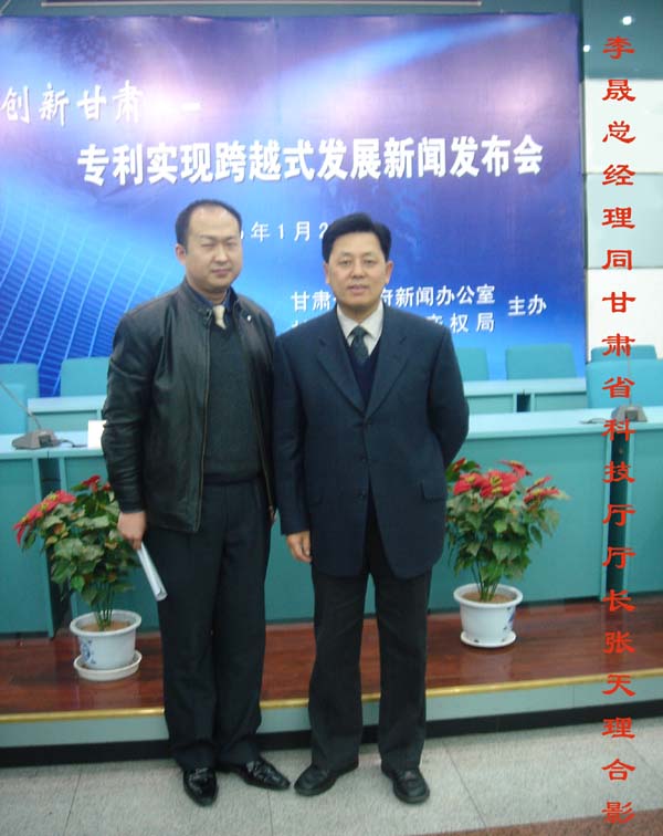 圖為李晟總經(jīng)理同甘肅省科技廳張?zhí)炖韽d長合影