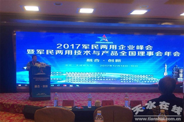 2017年軍民兩用企業(yè)峰會(huì)暨軍民兩用技術(shù)與產(chǎn)品全國(guó)理事會(huì)由中國(guó)航天十二院、軍民兩用技術(shù)與產(chǎn)品全國(guó)理事會(huì)主辦,中國(guó)航天科技集團(tuán)軍民融合促進(jìn)中心和中國(guó)航天系統(tǒng)科學(xué)與工程研究院支持協(xié)辦,以“融合·創(chuàng)新”為主題,圍繞軍民融合企業(yè)發(fā)展中關(guān)切的政策問(wèn)題、體制機(jī)制、市場(chǎng)以及技術(shù)問(wèn)題等開(kāi)展廣泛交流,旨在十九大精神指引下,深入貫徹落實(shí)軍民融合發(fā)展戰(zhàn)略和創(chuàng)新驅(qū)動(dòng)發(fā)展戰(zhàn)略,搭建軍民互動(dòng)交流平臺(tái),推動(dòng)軍民兩用技術(shù)創(chuàng)新和產(chǎn)業(yè)化發(fā)展,激發(fā)軍民協(xié)同創(chuàng)新熱情,營(yíng)造軍民兩用技術(shù)發(fā)展的良好氛圍?偤笤芾と噬蠈ⅰ⑿旃庠I賹ⅰ⒉龢I(yè)庭少將、中國(guó)航天十二院院長(zhǎng)薛惠鋒、理事會(huì)顧問(wèn)、專家委員會(huì)專家,以及來(lái)自軍方、軍工,以及地方政府、企業(yè)各界的代表500余人出席了本次盛會(huì)。天水二一三電器有限公司董事長(zhǎng)何建文帶隊(duì)參加本次會(huì)議。