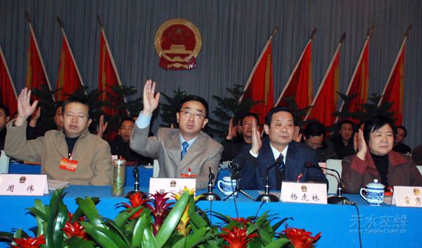 。ㄇ刂輩^(qū)委宣傳部 裴振剛,天水在線(xiàn) 丁建太 現(xiàn)場(chǎng)報(bào)道 )在完成各項(xiàng)預(yù)定的議程后,天水市秦州區(qū)第六屆人民代表大會(huì)第二次會(huì)議于2008年1月14日上午勝利閉幕。