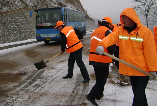 連日來,天水境內(nèi)連降小到中雪,為了確保春運前期公路的安全暢通。秦州公路管理段組織全段廣大干部職工及時上路掃雪撒砂防滑,為過往車輛提供了安全的行車條件。圖為職工在國道316線江天路稍子坡段撒砂防滑時的情景。(供稿:秦州公路管理段辦公室)