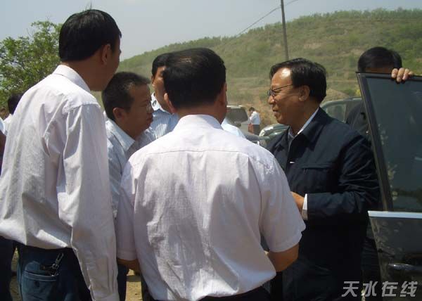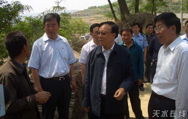 (5月17日上午, 甘肅省委書(shū)記、省人大常委會(huì)主任陸浩,省長(zhǎng)徐守盛到皂郊鎮(zhèn)白家山村查看5.12地震災(zāi)情配圖:天水在線)