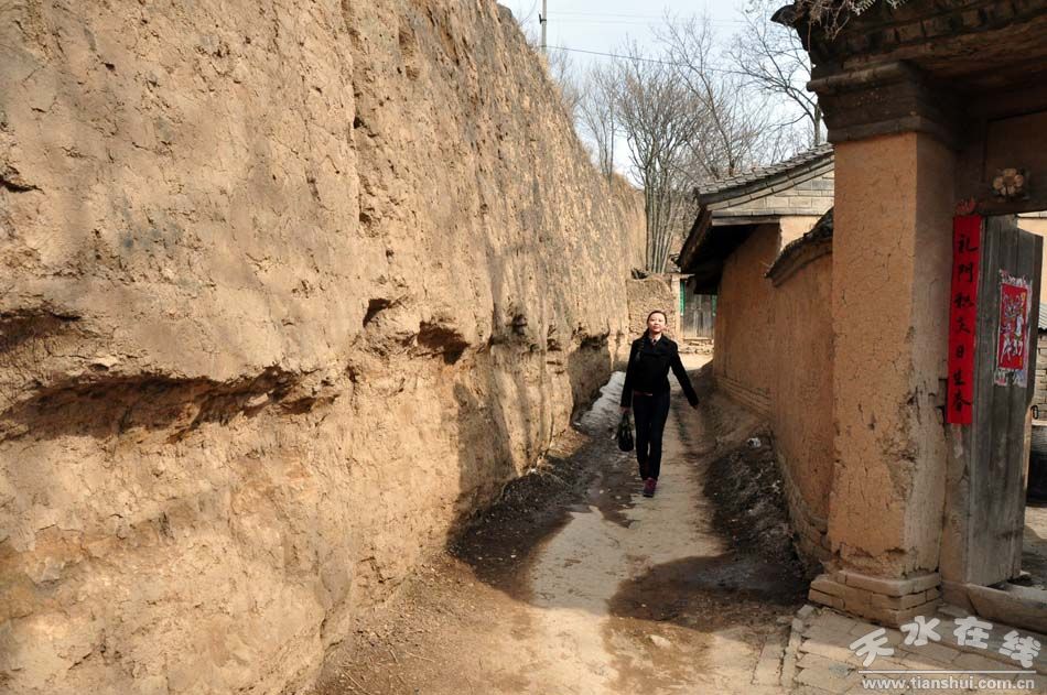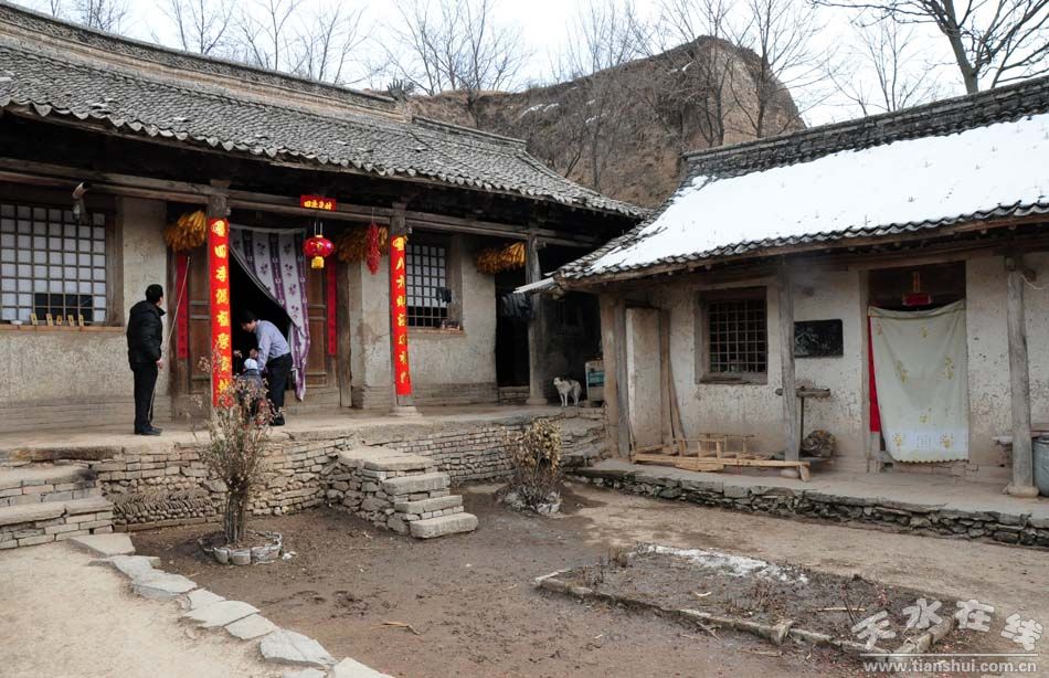 當我們走進“后城堡”,這堡內(nèi)只居住著八、九戶人家,據(jù)村民說,這家先祖有一人在清代考取了貢生,人們稱他“貢爺”,后又參考,當了省城的大官,什么官兒不知,但當時土匪不騷擾此城,因為省城有大官的緣故,土匪怕惹不起,所以幾乎沒有侵犯。進入堡內(nèi)不遠,果真見有一座垂花門,雖破舊不堪,但垂花門基本還保存,只是垂柱上的垂花不見了,門雖舊,但還不減當年富麗堂皇,達官貴人居住的那種風貌,使人想到在這山高偏遠的地方,還確實能見到垂花門!按够ㄩT”,筆者在秦州城西關(guān)所見了好幾處垂花門,但城里的垂花門并不奇怪,可在這里讓人就感慨多了。