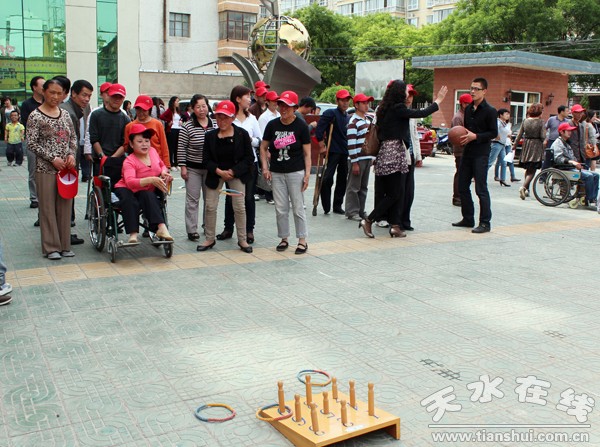 這天下午,大城街道六個社區(qū)的50多名殘疾人運動員或母親托著兒子,或丈夫推著妻子,早早地來到青少年活動中心,戴著統(tǒng)一的阿迪達斯夏涼帽,在區(qū)殘聯(lián)工作人員的指導下,進行了一場別開生面的迎接第22個“全國助殘日”運動會。運動員們根據(jù)自身特點踢球的踢球,套圈的套圈,爭先恐后、頑強拼搏,展示了他們身殘志堅、樂觀向上、積極進取的精神風貌,深深地感動了在場的觀眾。正當活動進行過程中,副市長霍衛(wèi)平一行驅(qū)車來到比賽現(xiàn)場,親切看望慰問了運動員并送來了價值7000多元的文體器材,當曾獲得過亞殘會100米短跑第四名的殘疾人杜玉婷從霍衛(wèi)平手中接過500元慰問金時,激動得熱淚盈眶,表示一定要自強不息,勇敢面對生活。