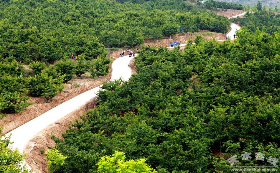 煙鋪村的大櫻桃無論從栽植規(guī)模還是眼下長勢看堪稱天水乃至甘肅果業(yè)發(fā)展新的亮點。示范園有國內(nèi)看好的紅燈、大紫、先鋒等名優(yōu)品種,這里遠離工業(yè)塵埃,海拔適宜,土壤肥沃,光照充足,降雨量適中,空氣清新,生態(tài)環(huán)境優(yōu)越,是大櫻桃的適生區(qū)。其生產(chǎn)過程采用先進科學的管理技術(shù),不打農(nóng)藥,不使用化學藥品,是優(yōu)質(zhì)、高效、安全、放心的綠色果品。早春,花滿枝頭,香飄萬家,這里成了花的海洋,休閑觀光者紛至沓來,盡情分享春的溫馨;晚春,碩果累累,艷麗迷人,商賈云集,豐收帶給廣大果農(nóng)豐厚的回報,果農(nóng)用一筐筐、一籃籃人間仙果換回一沓沓嶄新的票子,換來莊稼漢幸福、美滿、甜蜜的好日子。