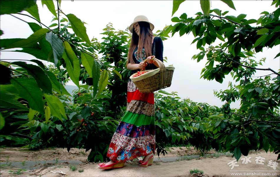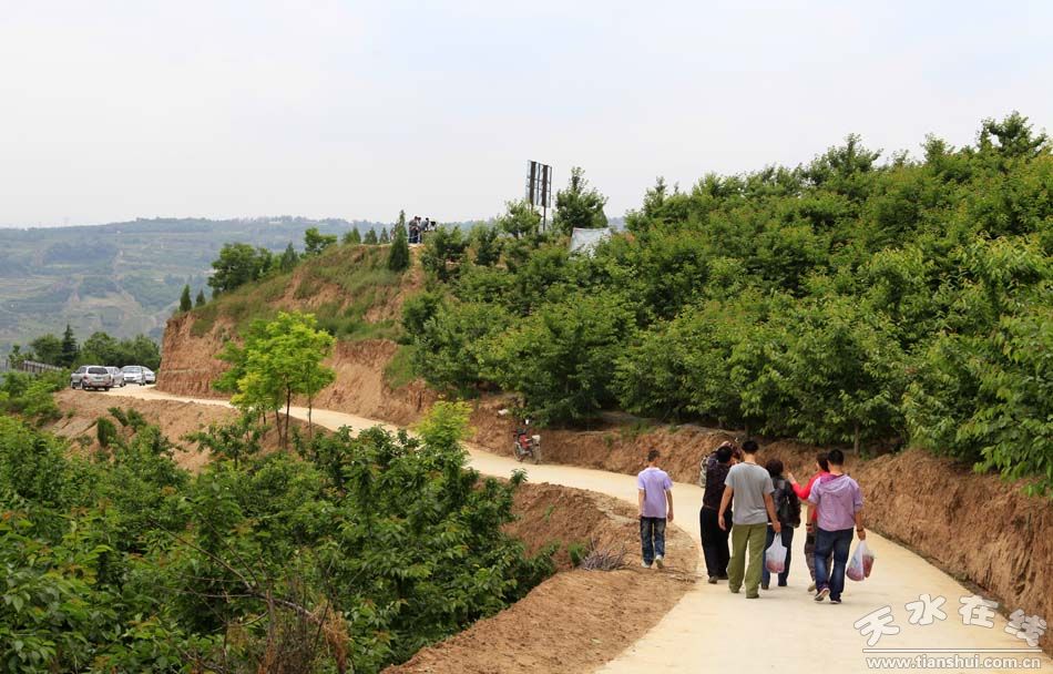 火紅的五月,走進煙鋪村,大道兩旁綿延山頂?shù)臋烟覉@直撲眼簾。家家戶戶的園子里,男男女女、老老少少正在忙碌著,他們的歡聲笑語,不時在果樹行間飄來蕩去。綠樹上,是艷麗迷人的大櫻桃,滿目翠綠間,一串串火紅的大櫻桃如同紅寶石一般掛滿枝頭,鮮嫩欲滴。幾年前還比較貧困的煙鋪村如今火了起來,遠近聞名,連續(xù)兩年,每逢開園之際,來這里摘采觀光的游客和洽談訂貨的商客絡繹不絕,無不稱贊大櫻桃味美色艷,是天水乃至甘肅最有發(fā)展前途的水果產(chǎn)業(yè),村民們跟著大櫻桃沾光,腰包也變得鼓了起來。