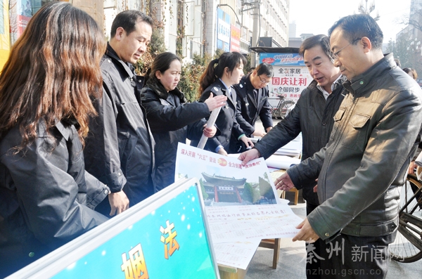 。▍^(qū)司法局)為了切實(shí)做好今年“12.4”全國(guó)法制宣傳日宣傳活動(dòng),秦州區(qū)緊緊圍繞“弘揚(yáng)憲法精神,服務(wù)科學(xué)發(fā)展”這一活動(dòng)主題,以全面深化“六五”普法工作為抓手,以“法律七進(jìn)”活動(dòng)為載體,與時(shí)俱進(jìn),開拓創(chuàng)新,開展了一系列形式多樣、豐富多彩的法制宣傳活動(dòng);顒(dòng)當(dāng)天,區(qū)委常委、常務(wù)副區(qū)長(zhǎng)張憲泉對(duì)活動(dòng)開展情況進(jìn)行了現(xiàn)場(chǎng)檢查。
