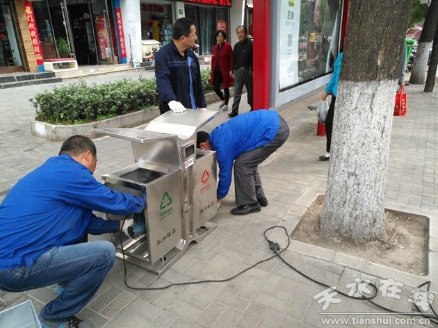 根據(jù)周邊環(huán)境不同和人流量大小,先后在伏羲城更換安裝了具有伏羲文化元素的新式環(huán)保果皮箱38個(gè),在李廣墓、諸葛軍壘、玉泉觀、山水新城濕地公園等景區(qū)景點(diǎn),皇城路、迎賓橋橋頭、南大橋花壇、重新街月季園等城市綠地休閑區(qū)和垃圾收集容器配置空白路段,安裝了新式雙桶分類果皮箱420多個(gè),在人流量大的中華西路步行街、中心廣場(chǎng)等城市繁華區(qū)域更新安裝了可回收、有毒有害、不可回收三箱一體環(huán)保分類果皮箱63個(gè),極大的提升了城市品位和垃圾收集效率。