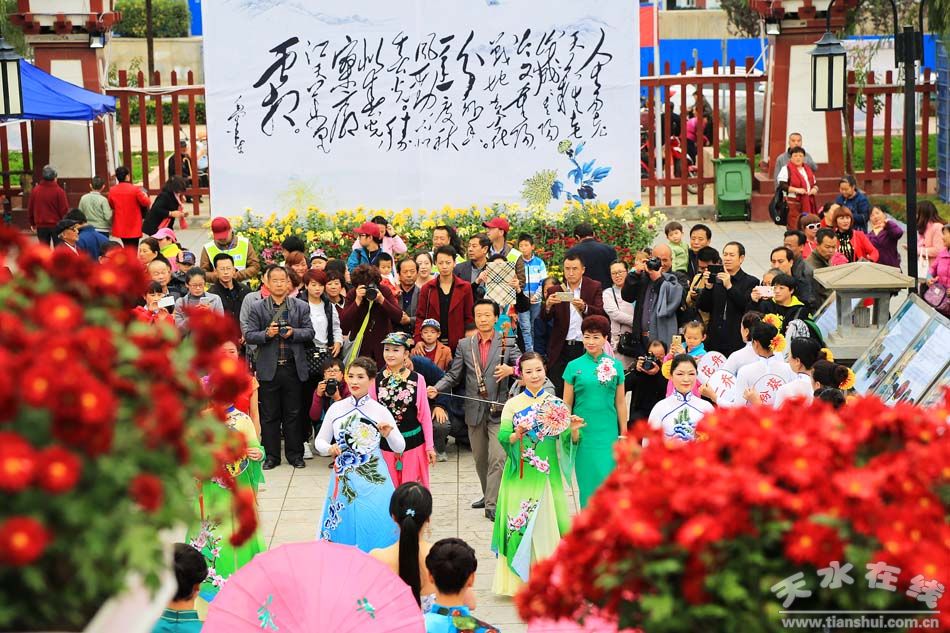 本次菊展主題為“菊舞金秋﹒美秦州”,以人民公園為展區(qū),通過菊花與園林植物、園藝鮮切花、天水民間傳統(tǒng)剪紙工藝及古秦州青瓦白墻的建筑風(fēng)格相結(jié)合,使整個公園沉浸在歡樂、祥和的氛圍中。為市民提供可以賞菊、 畫菊、拍菊、詠菊、茶菊的平臺,在秋風(fēng)颯爽的時節(jié),讓菊花的馨香走進(jìn)每一個市民的生活,讓菊花絢麗多姿的色彩扮靚秦州的秋天。