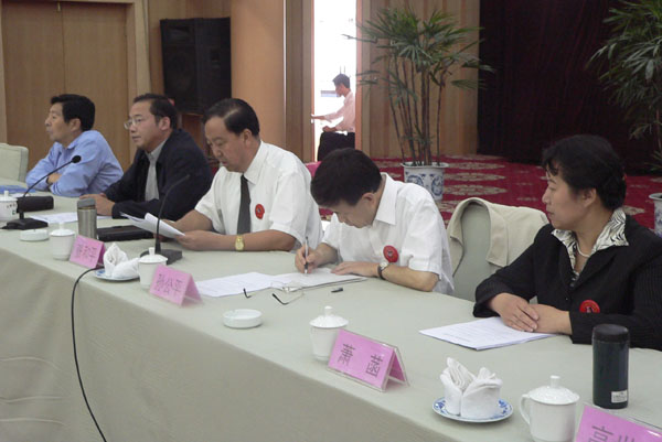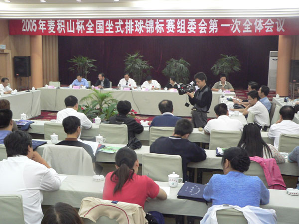 圖為9月4日下午在市政府招待所召開(kāi)的2005年“麥積山杯”全國(guó)坐式排球錦標(biāo)賽組委會(huì)第一次會(huì)議現(xiàn)場(chǎng)圖片