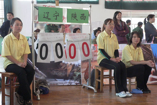 今天上午十點(diǎn)在天水南山體育訓(xùn)練館舉行的“全國(guó)坐式排球錦標(biāo)賽”女子第一階段C組比賽中,遼寧3:0勝陜西,具體比分是:
