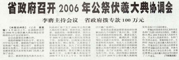 省政府召開(kāi)2006年公祭伏羲大典協(xié)調(diào)會(huì)