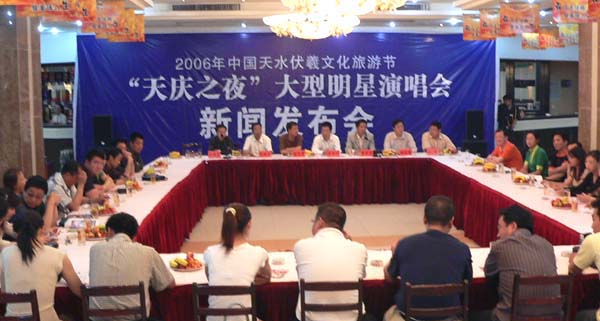 市文化局、市公安局、市交通局、市體育局、節(jié)會(huì)組委會(huì)辦公室、市國際商會(huì)、市演出公司的負(fù)責(zé)人以及甘肅電視臺、天水日報(bào)、天水晚報(bào)、天水電視臺、蘭州晨報(bào)、蘭州晚報(bào)、西部商報(bào)等新聞媒體參加了新聞發(fā)布會(huì)。
