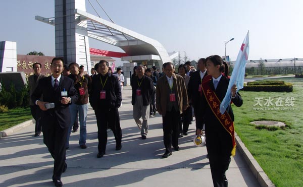 天水在線訊 10月8日上午,參加第四屆海峽兩岸中華傳統(tǒng)文化與現(xiàn)代化研討會的專家學(xué)者參觀了天水農(nóng)業(yè)高新技術(shù)示范園區(qū)。