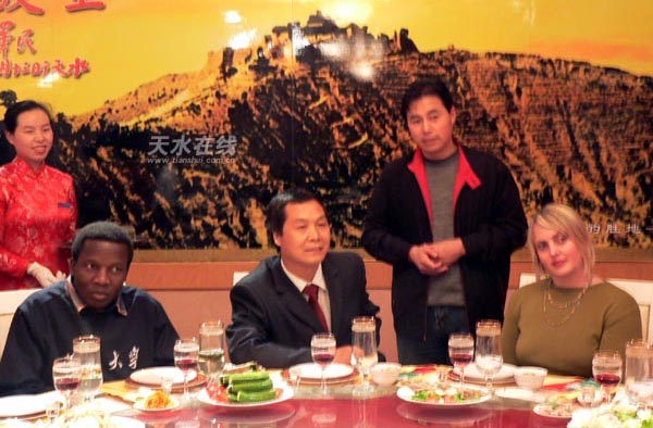 圖為天水市政府副秘書長仙松濤代表天水市政府宴請客人