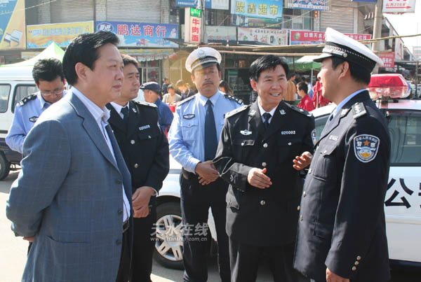 檢查中,楊維俊指出,經(jīng)過公安交警部門和各有關(guān)方面的共同努力,全市公安交通安全管理工作層次和水平有新的提高,今年以來全市交通安全四項(xiàng)指標(biāo)呈下降態(tài)勢。同時(shí),在部分路段仍然存在一些比較嚴(yán)重的交通違法行為,需要進(jìn)一步加大整治力度。他要求公安交警部門要結(jié)合70天交通安全專項(xiàng)整治工作,對無牌無證摩托車上路行使、機(jī)動(dòng)車輛超載超速超員,農(nóng)用車、拖拉機(jī)載人,以及酒后駕駛、亂停亂放等交通違法行為進(jìn)行專項(xiàng)整治;要進(jìn)一步加強(qiáng)對廣大交通民警的管理培訓(xùn),教育他們牢固樹立“立警為公、執(zhí)法為民”的思想,不斷強(qiáng)化服務(wù)意識(shí),堅(jiān)持“重管輕罰”、以說服教育為主的原則,文明執(zhí)法,熱情服務(wù),不斷提高廣大交通參與者的現(xiàn)代交通意識(shí)。要協(xié)調(diào)相關(guān)部門加大對重點(diǎn)區(qū)域、重點(diǎn)路段、重點(diǎn)時(shí)段的交通事故隱患排查整治力度,從根本上預(yù)防交通事故,努力為黨的十七大的勝利召開和“十一”旅游黃金周營造一個(gè)有序、安全、暢通、和諧的道路交通環(huán)境。
