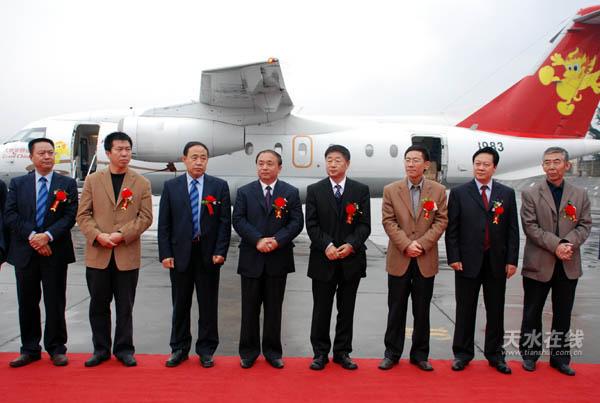 天水市有關(guān)領(lǐng)導(dǎo)與機(jī)組人員合影