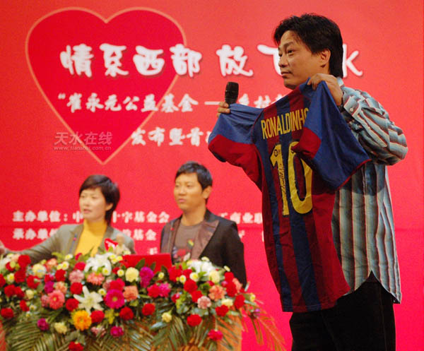 崔永元捐贈(zèng)的羅納爾迪尼奧的簽名球衣 由天慶集團(tuán)中標(biāo)。