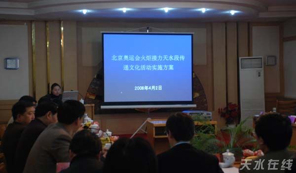 北京奧組委城市聯(lián)絡(luò)組考察天水火炬?zhèn)鬟f籌備工作匯報(bào)會(huì)