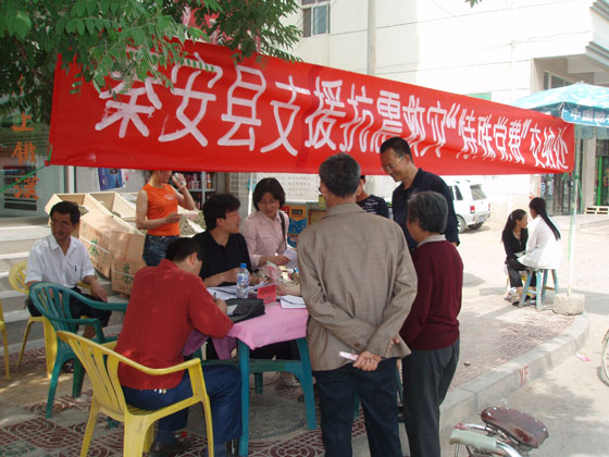 一方有難,八方支援“我們要交納黨費,為地震災(zāi)區(qū)奉獻一點愛心,為抗震救災(zāi)盡一點微薄力量,這是我們交納的2000元黨費,請轉(zhuǎn)交給災(zāi)區(qū)人民……”這是麥積區(qū)甘泉鎮(zhèn)玉蘭村村委會主任黃光臨和甘泉村村委會主任張恒保在交納“特殊黨費”時的真情表白。