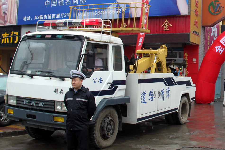 (交警支隊(duì)派出道路清障車現(xiàn)場(chǎng)待命)