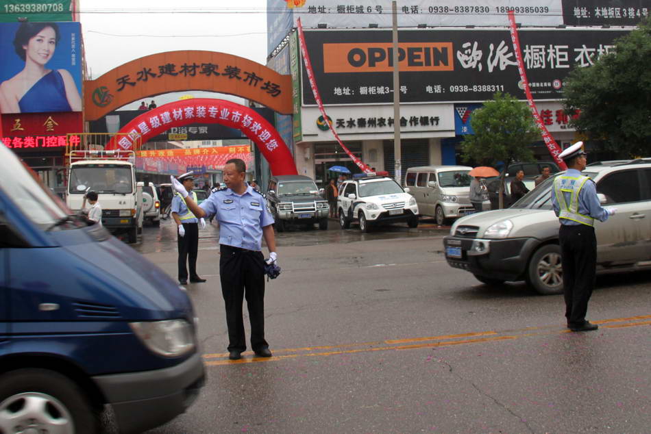 (天水市公安局副局長(zhǎng)、交警支隊(duì)支隊(duì)長(zhǎng)霍秦生現(xiàn)場(chǎng)檢查指導(dǎo)交通保障工作)
