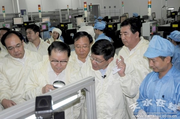 在天水華天科技股份有限公司,李長(zhǎng)春參觀了集成電路封裝測(cè)試生產(chǎn)線,通過(guò)顯微鏡仔細(xì)觀看了集成電路產(chǎn)品。李長(zhǎng)春贊嘆道:“在市場(chǎng)競(jìng)爭(zhēng)中,西部企業(yè)要比內(nèi)地和沿海地區(qū)的企業(yè)付出更多的努力,在甘肅有這樣的企業(yè),我真沒(méi)想到。”