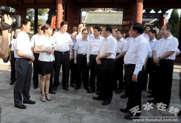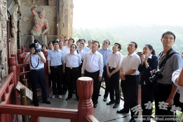 7月14日至15日,中共中央政治局常委李長(zhǎng)春在省委書(shū)記、省人大常委會(huì)主任陸浩,省委副書(shū)記、省長(zhǎng)劉偉平的陪同下,先后深入天水長(zhǎng)城開(kāi)關(guān)廠有限公司、天水華天電子集團(tuán)、天水市博物館、麥積山石窟藝術(shù)研究所調(diào)研,并與干部職工親切交談。中宣部副部長(zhǎng)、國(guó)家廣電總局局長(zhǎng)蔡赴朝,人民日?qǐng)?bào)社社長(zhǎng)張研農(nóng),新聞出版總署署長(zhǎng)柳斌杰,中宣部副部長(zhǎng)申維辰,財(cái)政部副部長(zhǎng)張少春,文化部副部長(zhǎng)王文章,光明日?qǐng)?bào)社社長(zhǎng)胡占凡,經(jīng)濟(jì)日?qǐng)?bào)社社長(zhǎng)徐如俊等隨行調(diào)研。省委常委、宣傳部部長(zhǎng)勵(lì)小捷,省委常委、秘書(shū)長(zhǎng)劉立軍,副省長(zhǎng)咸輝,省政協(xié)副主席、天水市委書(shū)記張景輝,市委副書(shū)記、市長(zhǎng)李文卿,市委副書(shū)記張應(yīng)華,市委常委、市紀(jì)委書(shū)記楊維俊,市委常委、宣傳部長(zhǎng)王光慶,市委常委、副市長(zhǎng)郭奇若,市委常委、秘書(shū)長(zhǎng)蔣曉強(qiáng),副市長(zhǎng)趙衛(wèi)東等陪同調(diào)研。
