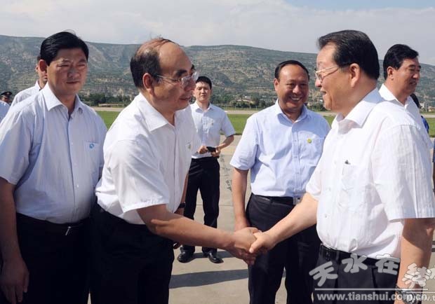 (中共中央政治局常委李長(zhǎng)春與省政協(xié)副主席、天水市委書(shū)記張景輝親切握手。)