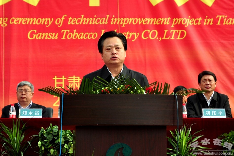 劉永富在奠基儀式上致辭,他說,國家煙草專賣局決定實施天水卷煙廠易地技術(shù)改造項目工程,為甘肅煙草工業(yè)加快發(fā)展注入了強大動力。甘肅煙草工業(yè)有限責任公司要全面貫徹實施卷煙上水平戰(zhàn)略,落實樹品牌、做貢獻要求,加快工程建設(shè)進度,加速技術(shù)創(chuàng)新能力,加強卷煙品牌建設(shè),科學管理,保證質(zhì)量,努力把天水卷煙廠建設(shè)成為技術(shù)、管理、產(chǎn)品、效益一流的優(yōu)秀企業(yè),促進甘肅煙草工業(yè)在更高層次、更高水平取得更好更快的發(fā)展。天水市委、市政府和省直各有關(guān)部門,要全力關(guān)心支持這個項目,及時解決項目建設(shè)中存在的困難和問題,確保項目早日建成投產(chǎn)。