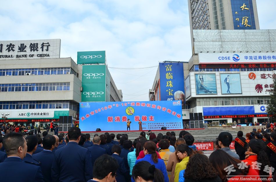 3月15日,天水龍城廣場(chǎng)車水馬龍,人潮如流。由天水市委、市政府主辦,市委宣傳部、市文明辦、市工商局、市消費(fèi)者協(xié)會(huì)承辦的“3•15”消費(fèi)維權(quán)大型宣傳咨詢活動(dòng)在此隆重舉辦。